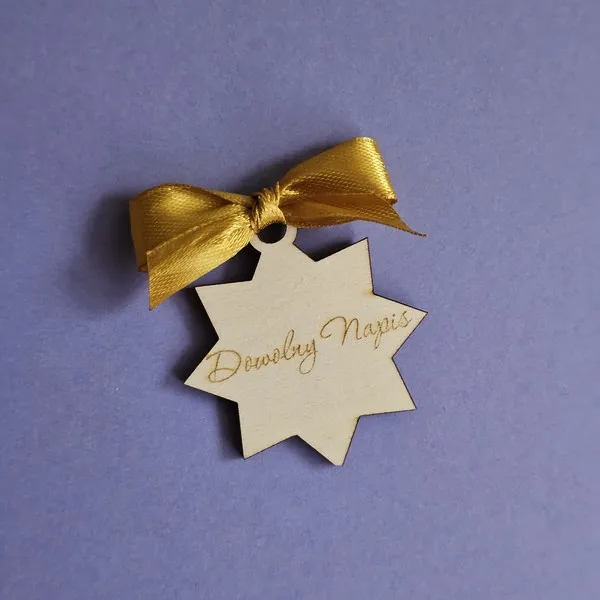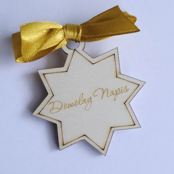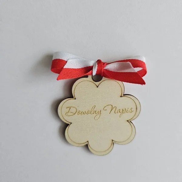 - Napisu w formie takiej, jaka ma być umieszczona na kotylionie (do 5 słów + ewentualnie liczba) na przykład: „50 rocznica ślubu Joasi & Staszka”, „18 urodziny Kasi”, „Anna i Piotr 25.12.2024 r.”, „65 Edka – Hurra Emerytura!”, „30 lat 'Anna i Kwiaty’ Sp.z o.o.”, „40 lat Tomka”, „30-lecie Szkoły im. M. Konopnickiej”, „Święto Niepodległości 18.11.2024 r.”, „Chrzest Święty Michasia”, „Pierwsza Komunia Święta Marianny 18.05.2025 r.”, „Ania Królowa Imprezy”, „Andrzej” lub „Nasza Mama Najlepsza Na Świecie” itp.