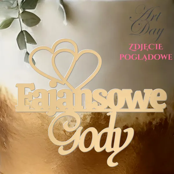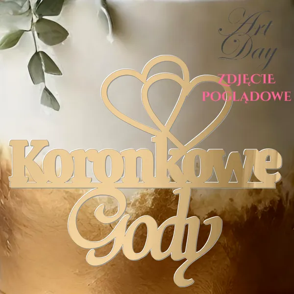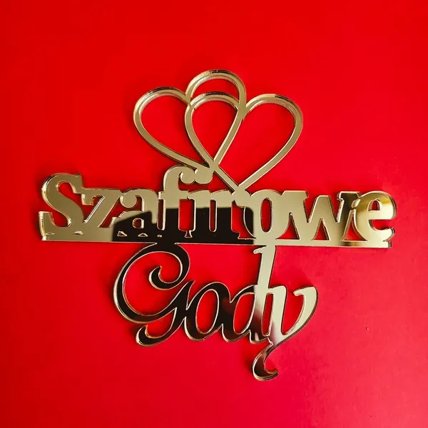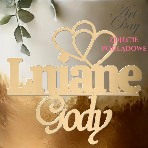 Topper boczny na rocznicę ślubu „Gody” z symbolem dwóch serc w złotym lustrze to elegancka i stylowa ozdoba, która doda blasku każdej uroczystości. Wykonany z wysokiej jakości materiałów, ten topper wyróżnia się nie tylko pięknym wyglądem, ale także trwałością. Złote lustro nadaje mu luksusowego charakteru, który z pewnością przyciągnie uwagę gości i sprawi, że każda rocznica ślubu będzie niezapomniana.