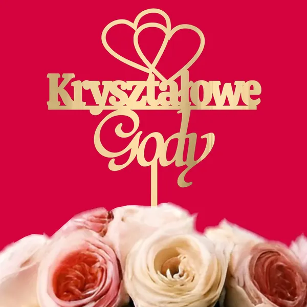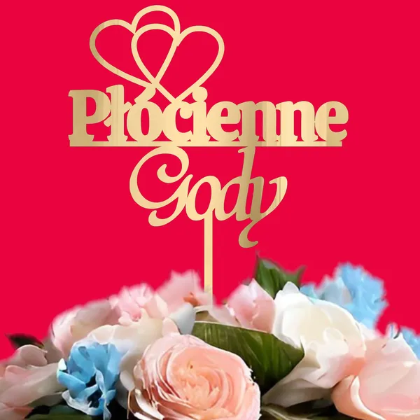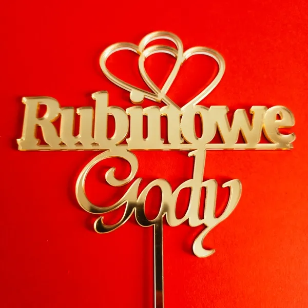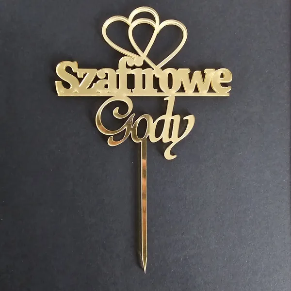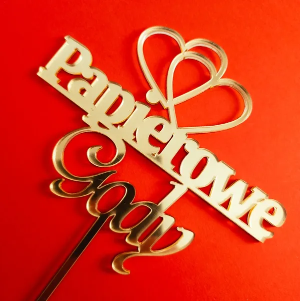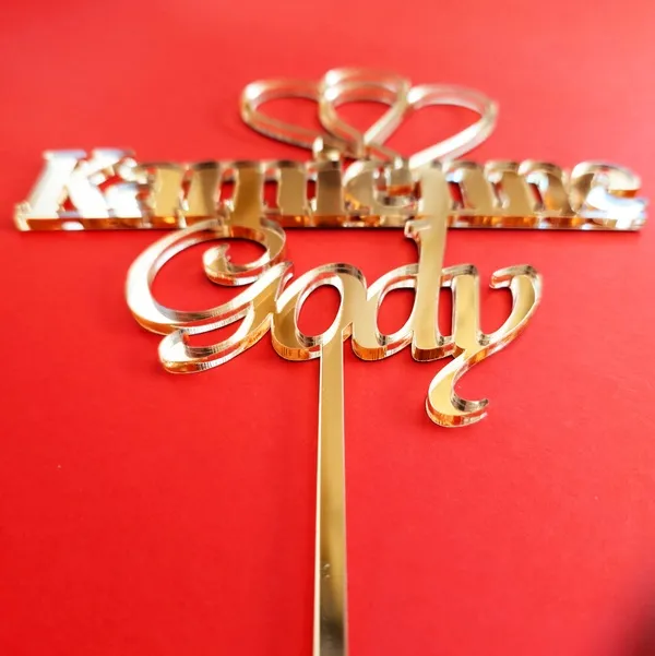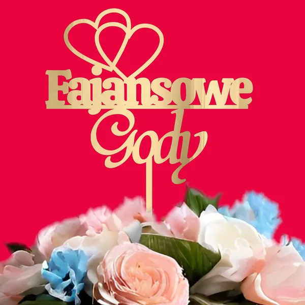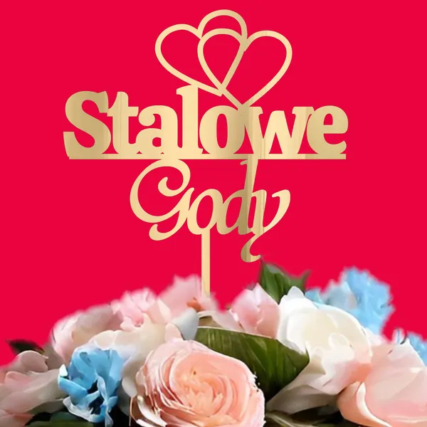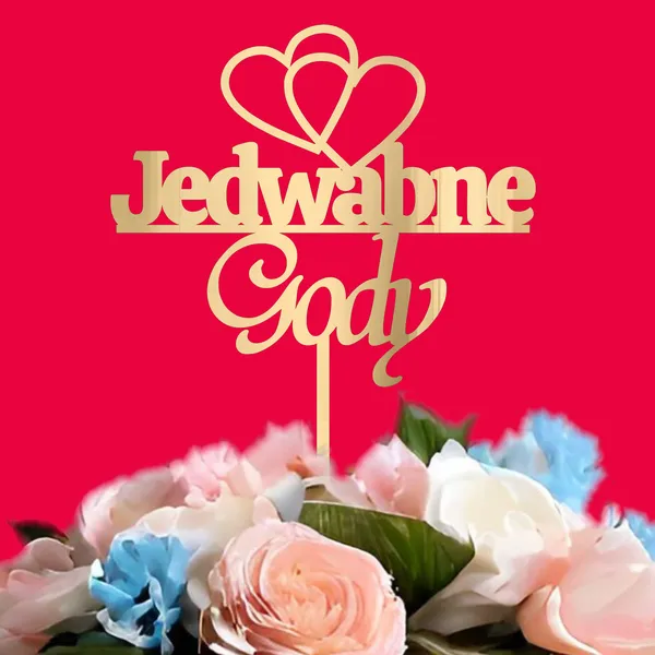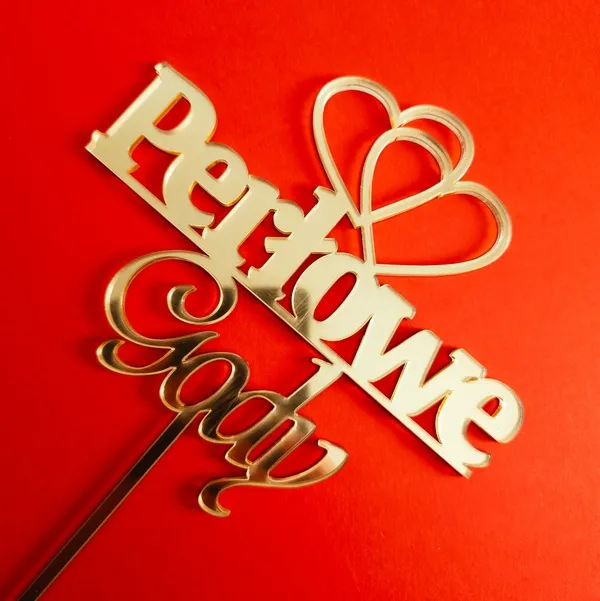 Świętuj swoją wyjątkową rocznicę ślubu z eleganckim topperem „Gody” wykonanym z plexi w kolorze złote lustro. Ten zachwycający dodatek z napisem „Gody” i symbolem dwóch serc, jest wykonany z wysokiej jakości materiałów, które dodadzą blasku każdej uroczystości. Idealny na każdą rocznicę, ten topper podkreśli wyjątkowy charakter Waszego święta.