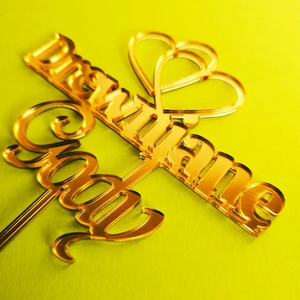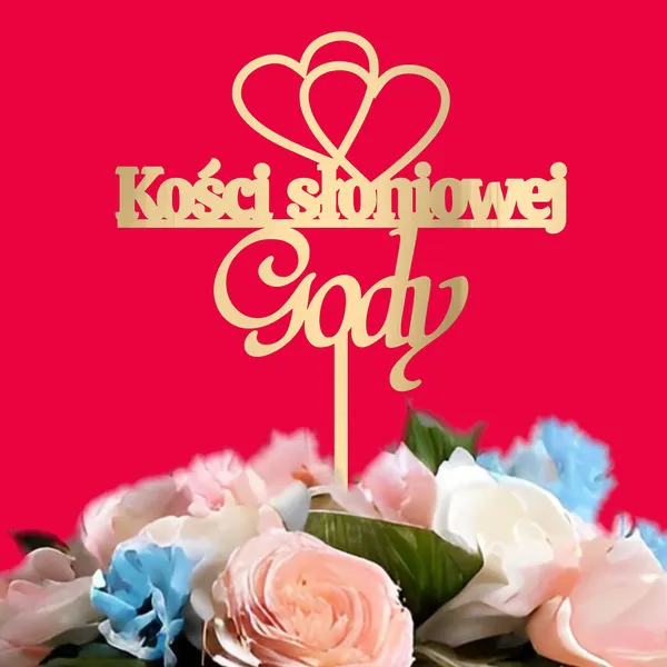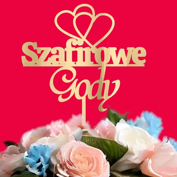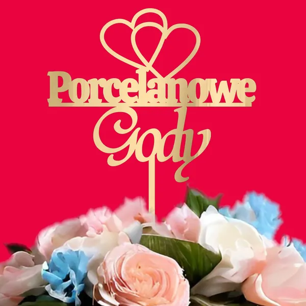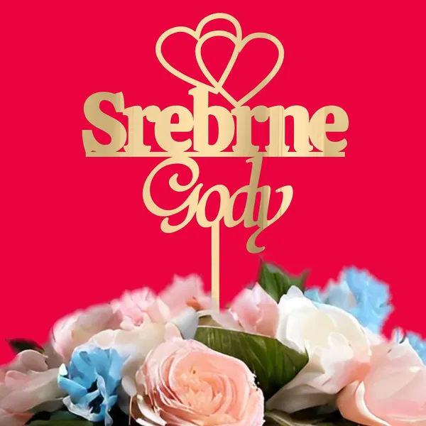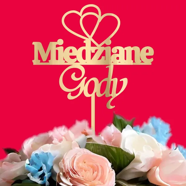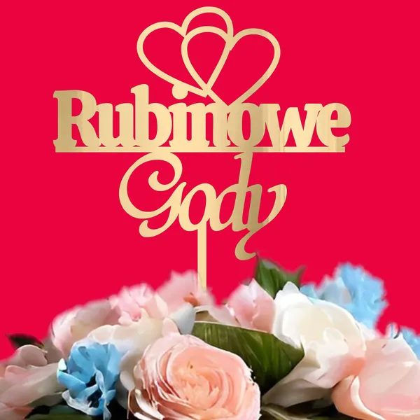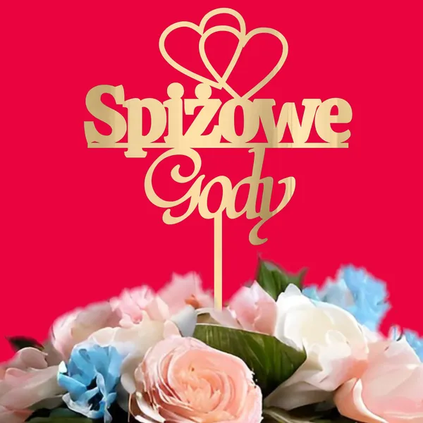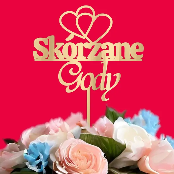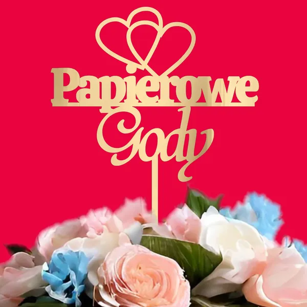 Świętuj swoją wyjątkową rocznicę ślubu z eleganckim topperem „Gody” wykonanym z plexi w kolorze złote lustro. Ten zachwycający dodatek z napisem „Gody” i symbolem dwóch serc, jest wykonany z wysokiej jakości materiałów, które dodadzą blasku każdej uroczystości. Idealny na każdą rocznicę, ten topper podkreśli wyjątkowy charakter Waszego święta.