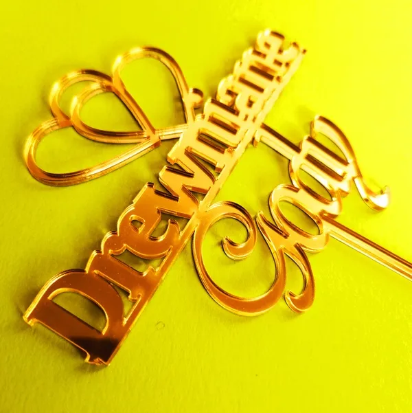 Wykonany z lustra akrylowego, topper „Gody” jest lekkim, ale wyjątkowo trwałym elementem dekoracyjnym, który odbija światło, tworząc piękne efekty wizualne. To idealny sposób na podkreślenie blasku i wyjątkowości tego ważnego dnia, a jednocześnie elegancki akcent, który zachwyci wszystkich gości.